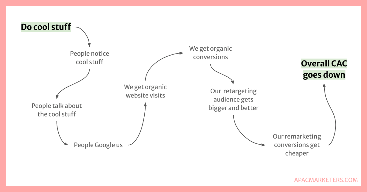 Hence, a linear take on this issue is to just cut and/or reduce TOFU and MOFU, since when you’re comparing based on CPAs, those spends are always going to “lose.” This is essentially what we did in 2020, and I think this is the action most companies took in the face of so much uncertainty in the market, and what felt like a lot of time pressure to do something quickly.