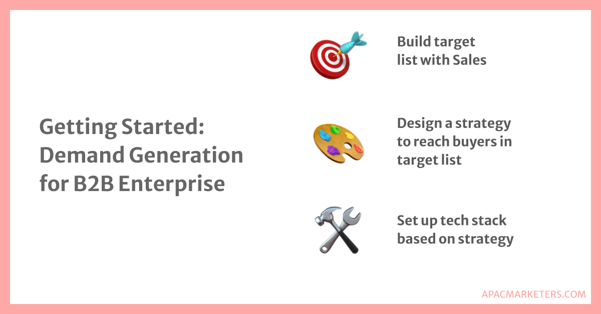 There are 3 key steps in setting up a basic demand or lead gen processes for acquiring enterprises:
