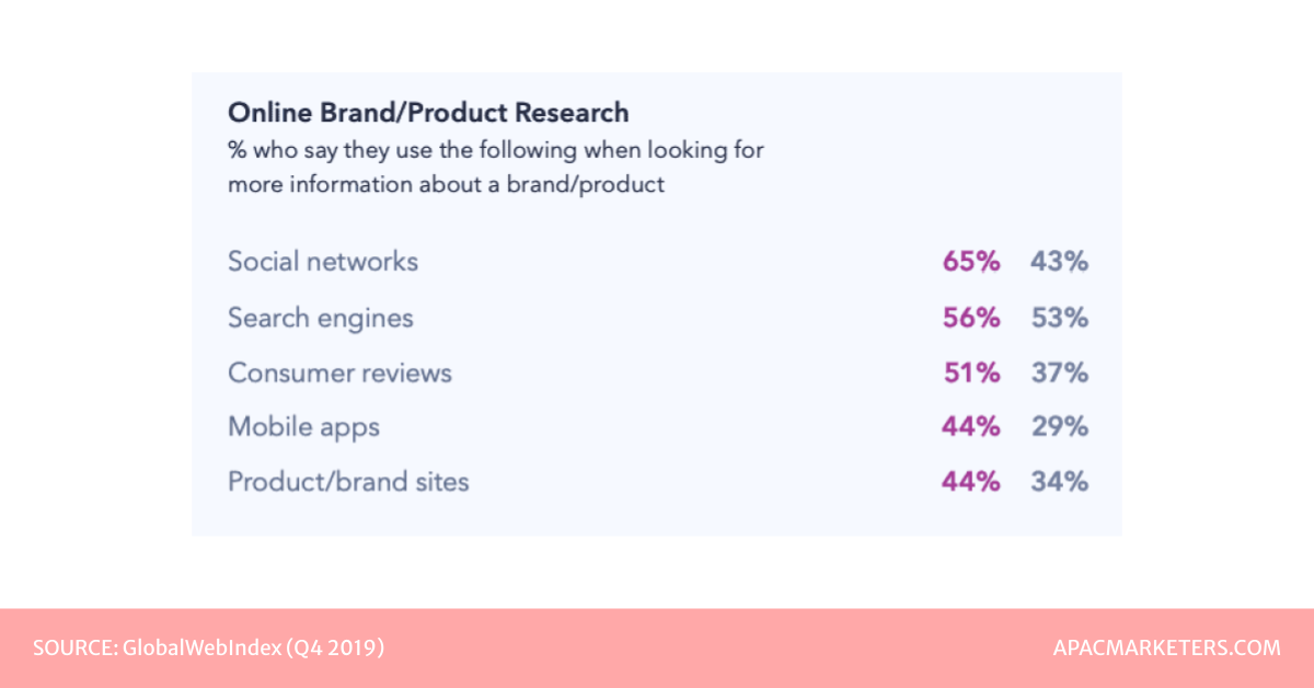 In most countries, consumers turn to search engines first to find info. Not so in the Philippines, who scores far above the global average for social networks influencing the buyers journey (source)