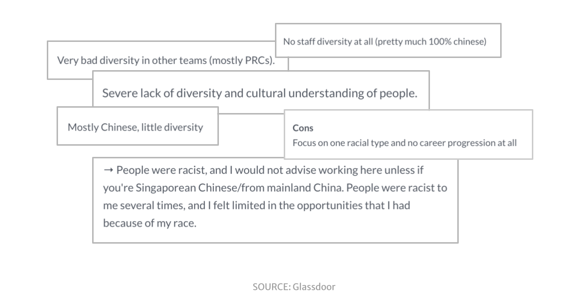 I was going through Sea Group and Shopee's Glassdoor reviews, and I noticed one theme kept coming up: they're terrible at diversity.